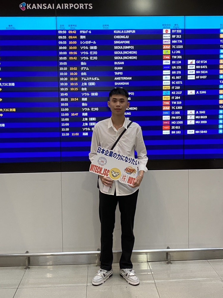 関西空港に1名入国。大阪府の企業様へ向かいます。学生より:日本での生活をとても楽しみにしています。 日本語の勉強と仕事も一生懸命頑張りたいと思います。