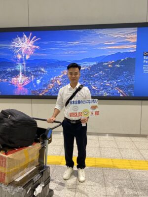 広島空港に1名入国。岡山県の企業様へ向かいます。学生より:日本での生活をとても楽しみにしています。 日本語の勉強と仕事も一生懸命頑張りたいと思います。