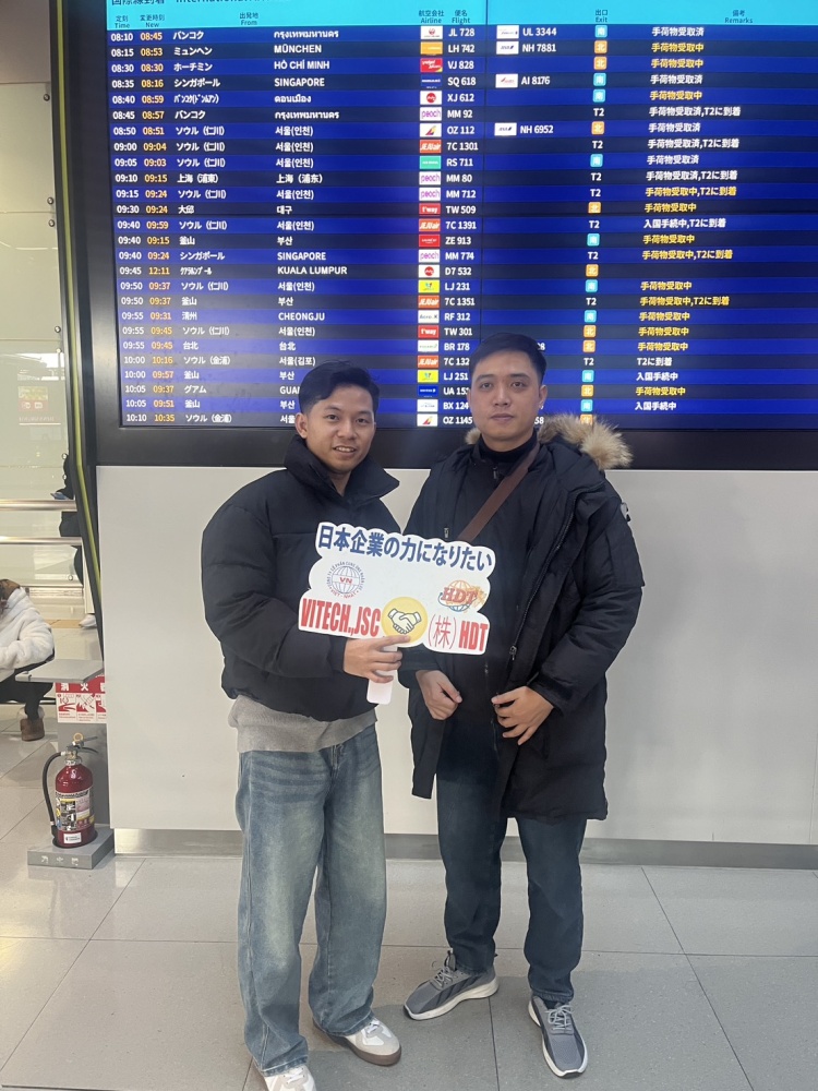 関西空港に2名入国。大阪府の企業様へ向かいます。学生より:日本に来ることができ、とても嬉しいです。日本は寒いですが、早く慣れるように頑張りたいと思います。