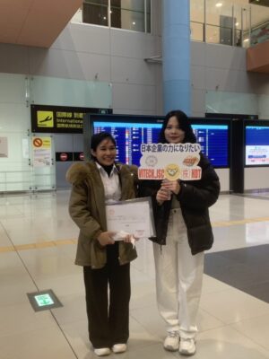 関西空港に2名入国。兵庫県の企業様へ向かいます。学生より:先生方、新年明けましておめでとうございます。 やっと日本にこれて嬉しいですが初日から荷物を持って行かれて不安です。 無事戻ってくることを願います。 仕事を一生懸命頑張ります!