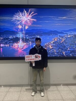 広島空港に1名入国。岡山県の企業様へ向かいます。学生より:日本は世界でもトップクラスの発展した産業を持つ国です。日本で働き、学べることをとても誇りに思っています。これから一生懸命勉強し、与えられる仕事をしっかりとこなすよう努力します。
