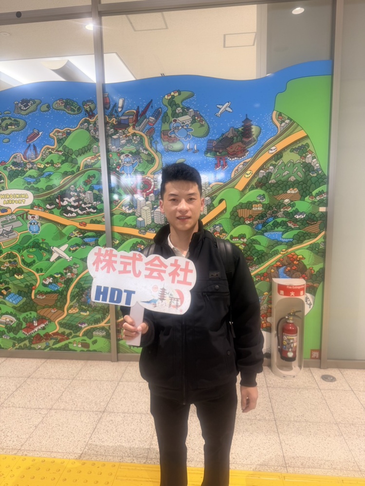 広島空港に1名入国。岡山県の企業様へ向かいます。学生より:広島空港に着いた瞬間、寒さを感じました。 やはりベトナムより寒いですね。 日本の雪と桜を見るのがとても楽しみです。