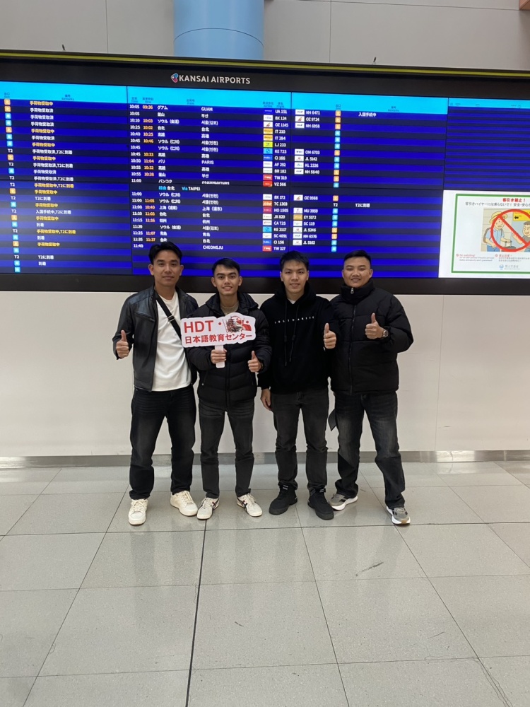 関西空港に4名入国。京都府の企業様へ向かいます。学生より:とても寒いですし、疲れました。 でも、仕事を頑張りたいです。 桜も見たいです。