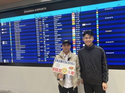 関西空港に2名入国。大阪府の企業様へ向かいます。学生より:日本はとても綺麗です。来たばかりで印象はよくわかりませんがとにかく頑張ります。 宜しくお願い致します。