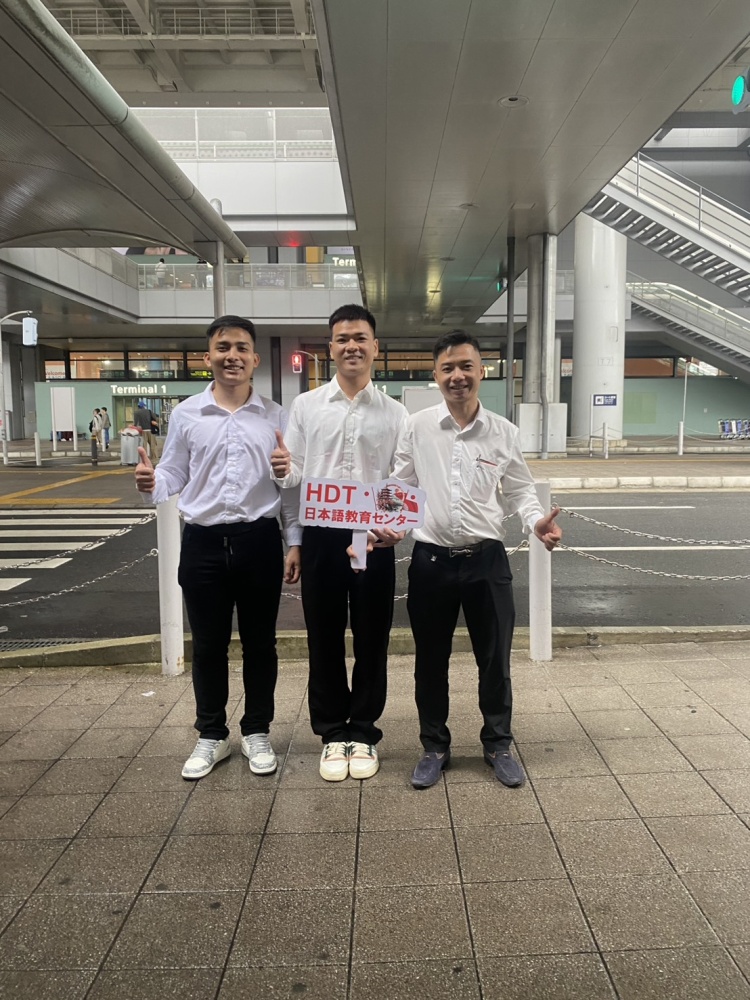 関西空港に3名入国。大阪府の企業様へ向かいます。学生より:日本はとても寒いです。 雨で残念です。 仕事と日本語頑張ります。