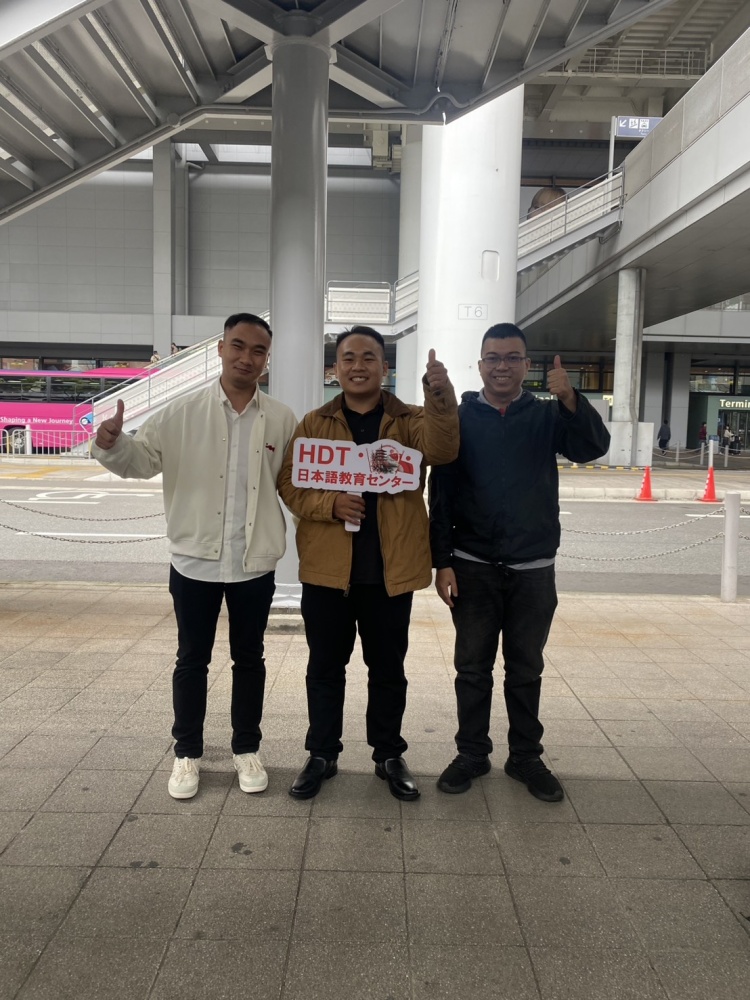 関西空港に3名入国。大阪府の企業様へ向かいます。学生より:日本はとても寒いです。 雨で残念です。 仕事と日本語頑張ります。