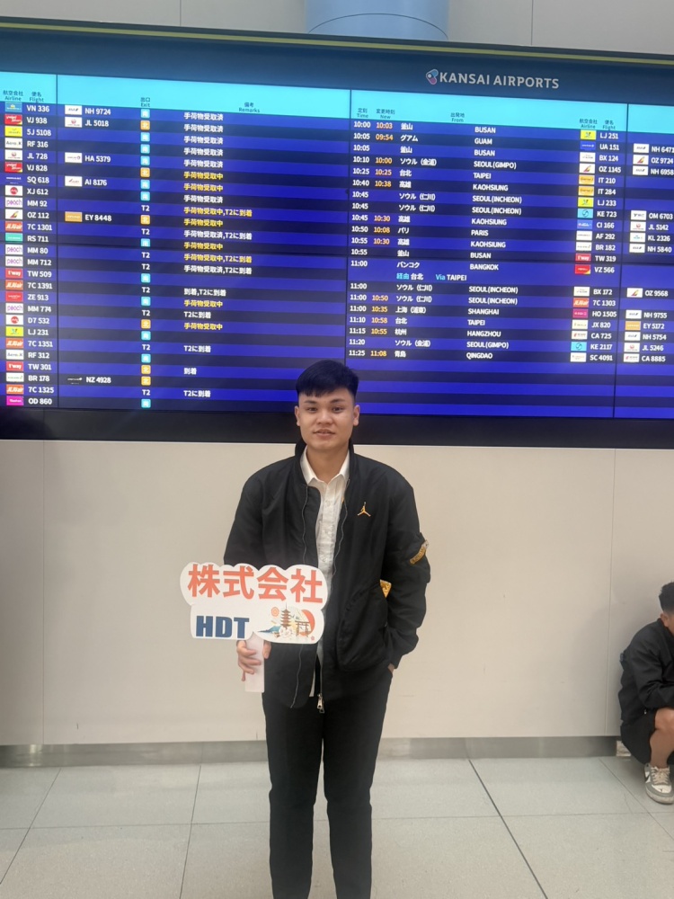 関西空港に3名入国。兵庫県の企業様へ向かいます。学生より:日本は発展して現代的な国です。子供の頃から漫画や映画を通じて日本を知り、とても好きになりました。今日、日本に来られてとても嬉しく、感動しています。これから一生懸命仕事をし、しっかり日本語を学びます。
